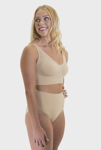 The high cut leg is universally flattering, and a cotton gusset ensures breathability as well as absorption. Seamless for all day comfort, there are no tags or labels to cause irritation. It's just perfect.