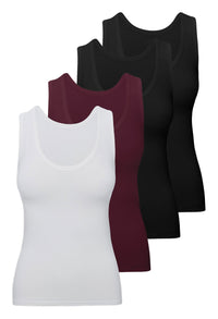 Our 4-pack of tank tops is constructed from a silky-feel bamboo fabrication that softly hugs your body. This top feels luxuriously comfortable and helps to create a smooth silhouette. The extra length is perfectly versatile to wear these staple pieces around at home as loungewear, out and about with jeans or layered under clothing! Choose among our three colour options to suit your lifestyle.